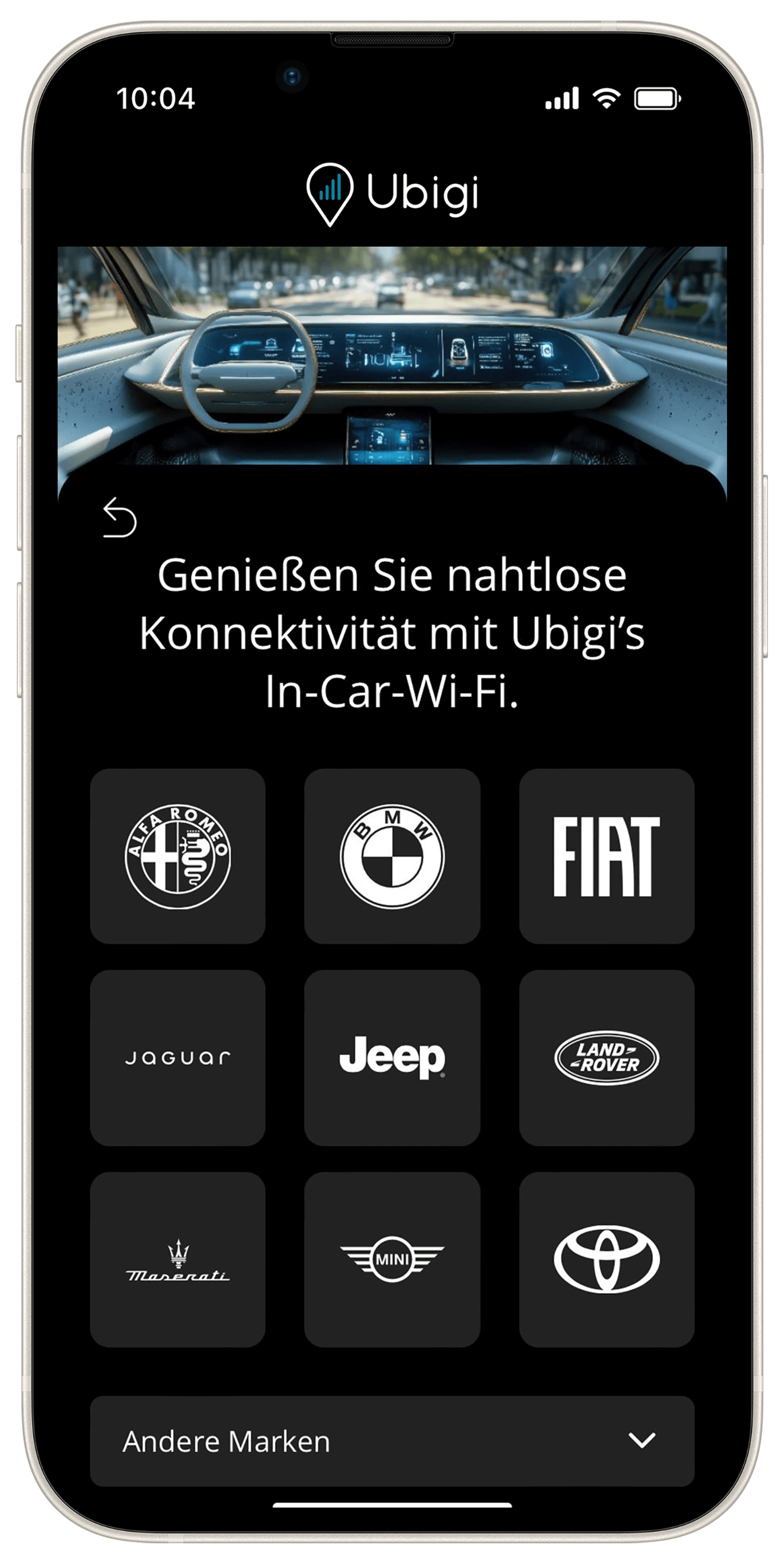 Vergewissern Sie sich, dass Ihr Mobilgerät über den Wi-Fi Hotspot des Fahrzeugs mit dem Internet verbunden ist.